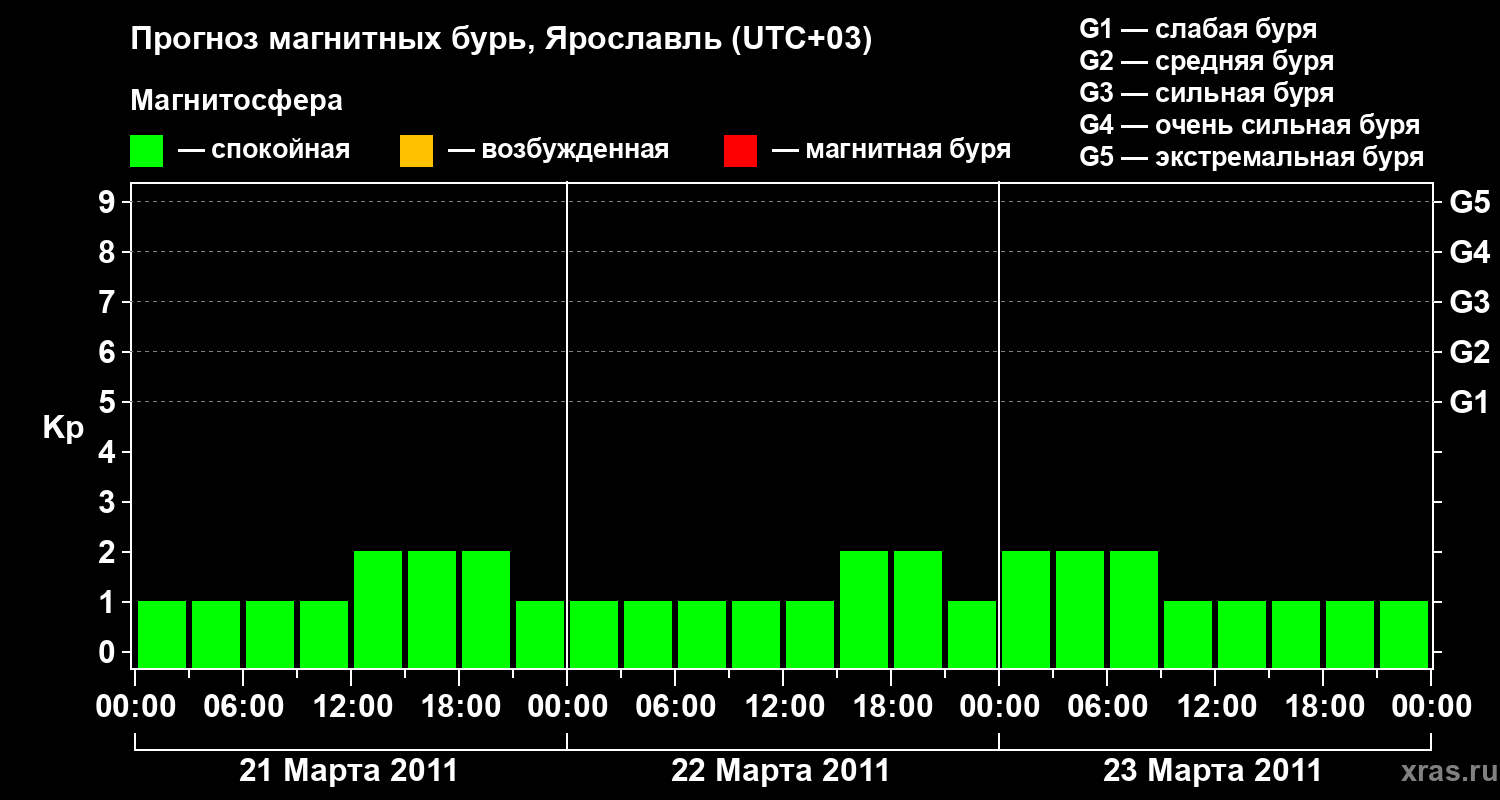 Прогноз магнитных бурь в Ярославле — 21 марта 2011 года