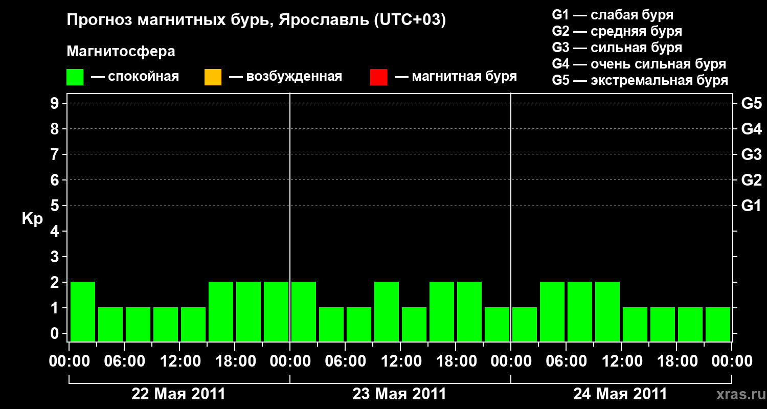 Прогноз магнитных бурь в Ярославле — 22 мая 2011 года