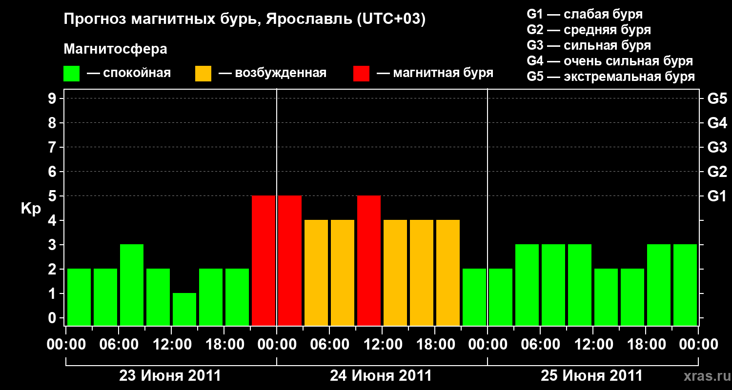 Прогноз магнитных бурь в Ярославле — 23 июня 2011 года