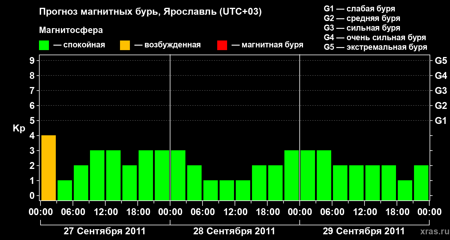 Прогноз магнитных бурь в Ярославле — 27 сентября 2011 года