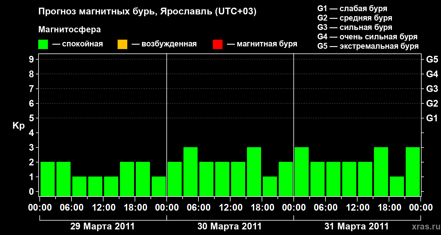 Прогноз магнитных бурь в Ярославле — 29 марта 2011 года