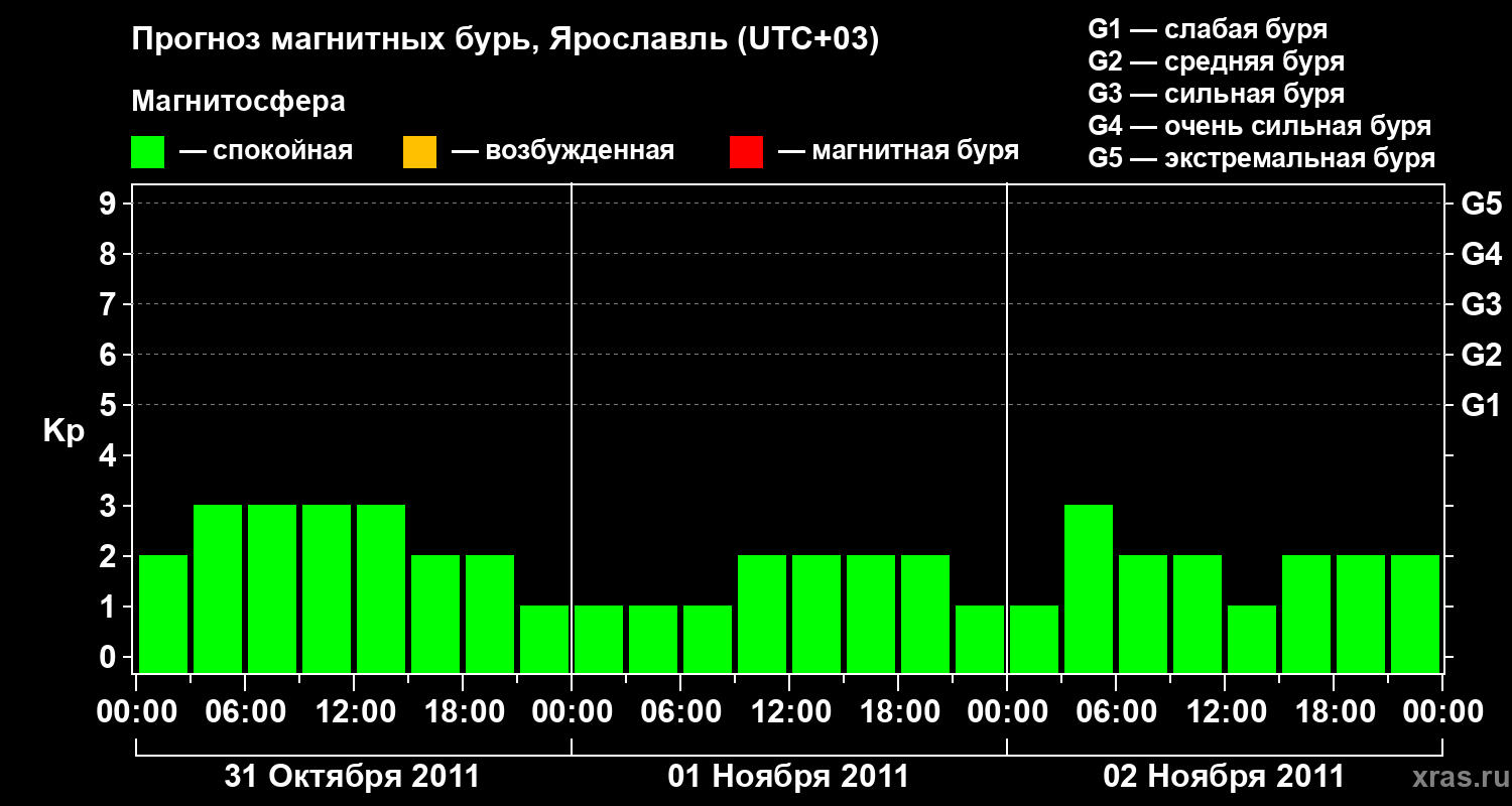 Прогноз магнитных бурь в Ярославле — 31 октября 2011 года