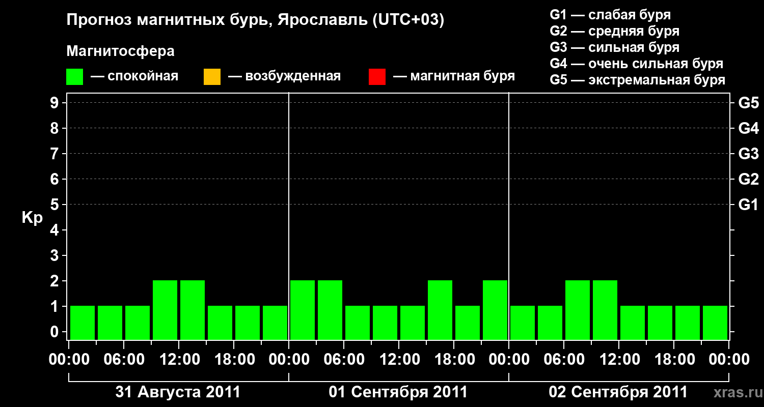 Прогноз магнитных бурь в Ярославле на 31 августа 2011 года