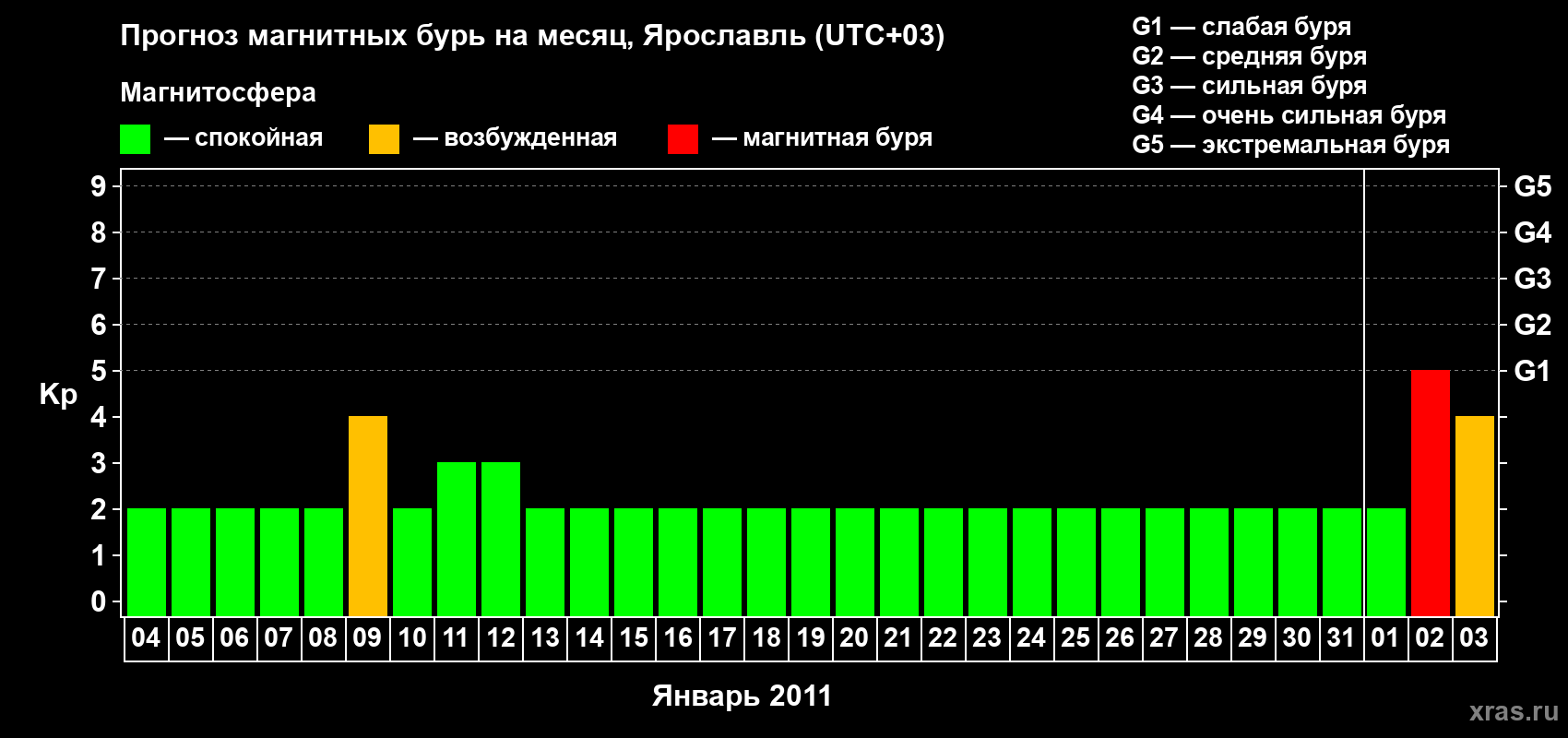 Прогноз магнитных бурь в Ярославле на 4 января 2011 года