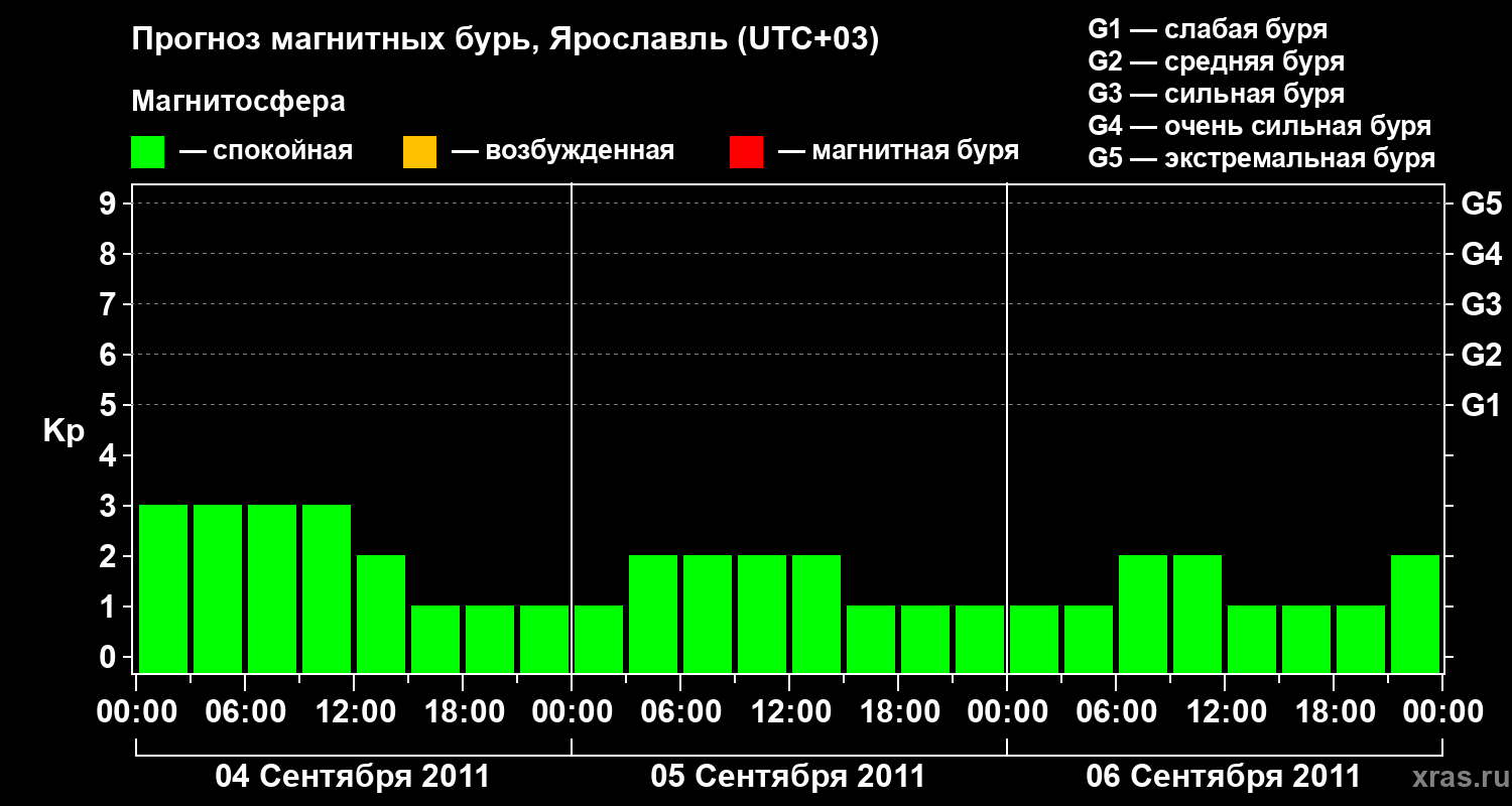 Прогноз магнитных бурь в Ярославле — 4 сентября 2011 года