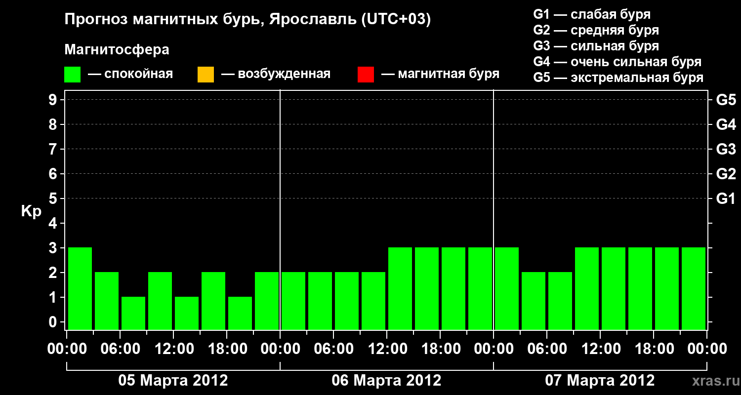 Прогноз магнитных бурь в Ярославле — 5 марта 2012 года