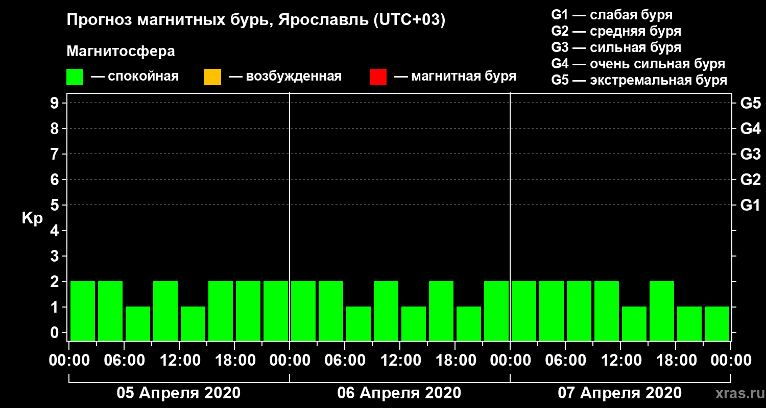 Прогноз магнитных бурь в Ярославле — 5 апреля 2020 года