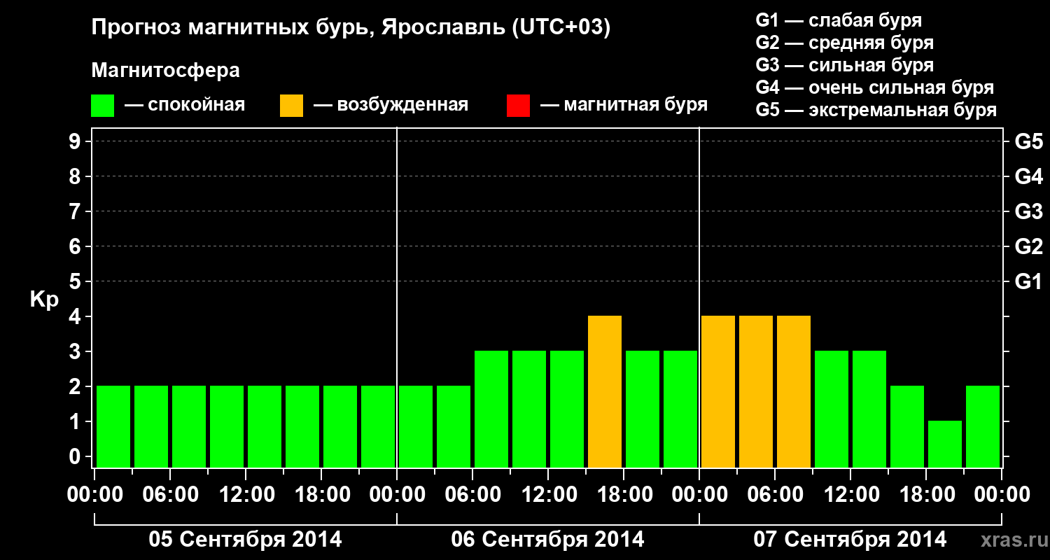 Прогноз магнитных бурь в Ярославле на 5 сентября 2014 года