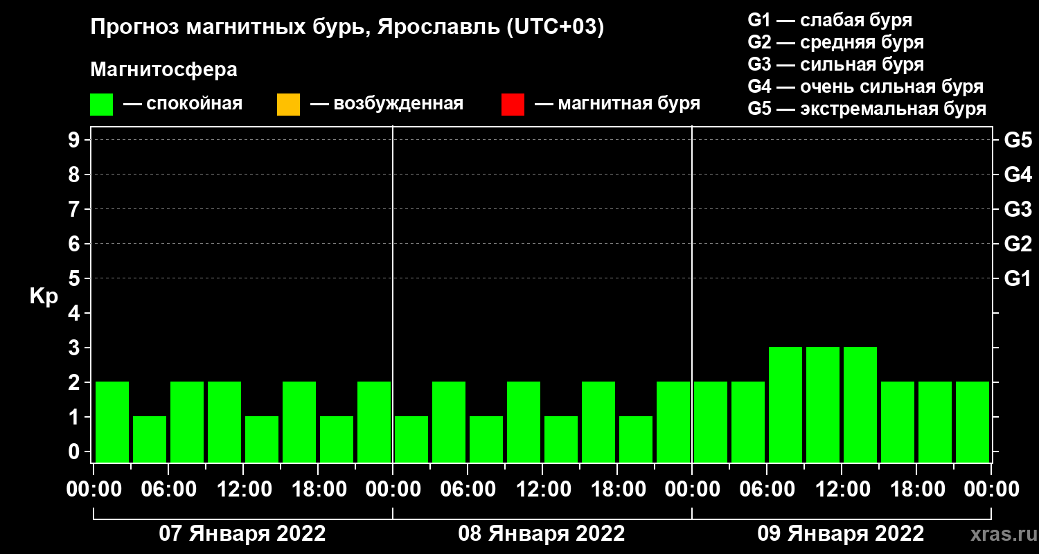 Прогноз магнитных бурь в Ярославле — 7 января 2022 года