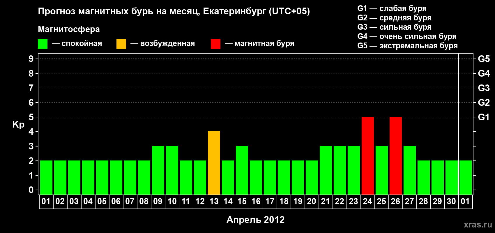 Прогноз магнитных бурь в Екатеринбурге — 1 апреля 2012 года