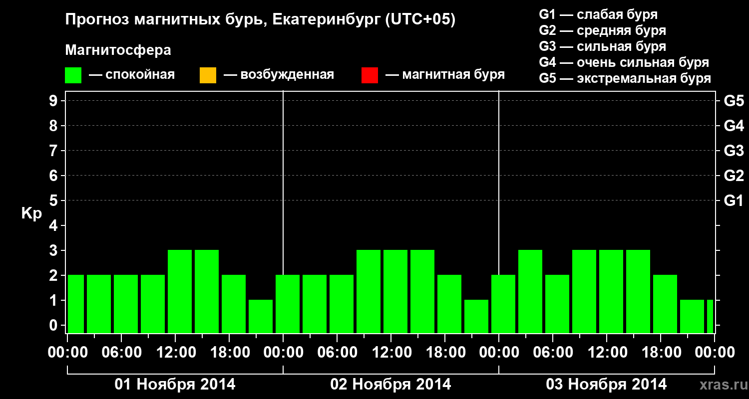 Прогноз магнитных бурь в Екатеринбурге — 1 ноября 2014 года