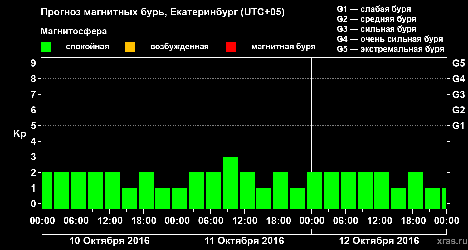 Прогноз магнитных бурь в Екатеринбурге — 10 октября 2016 года