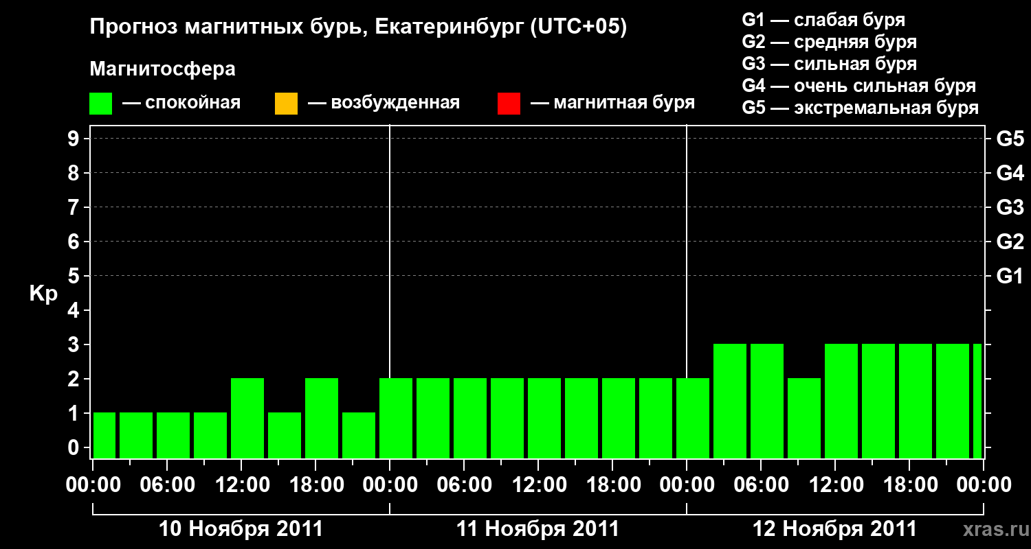Прогноз магнитных бурь в Екатеринбурге — 10 ноября 2011 года