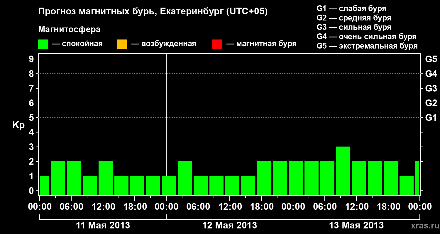 Прогноз магнитных бурь в Екатеринбурге — 11 мая 2013 года
