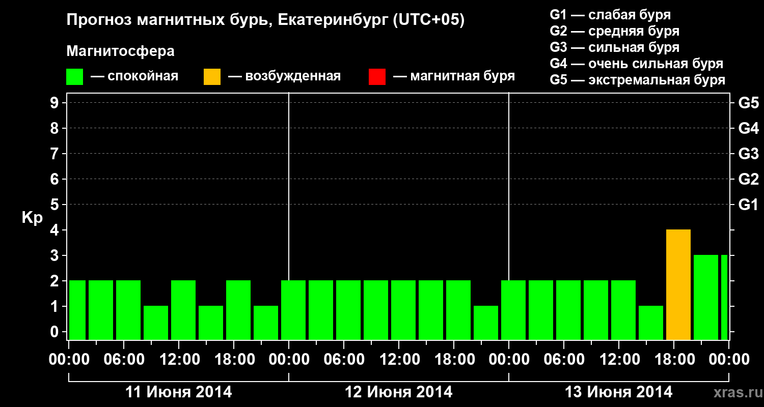 Прогноз магнитных бурь в Екатеринбурге — 11 июня 2014 года
