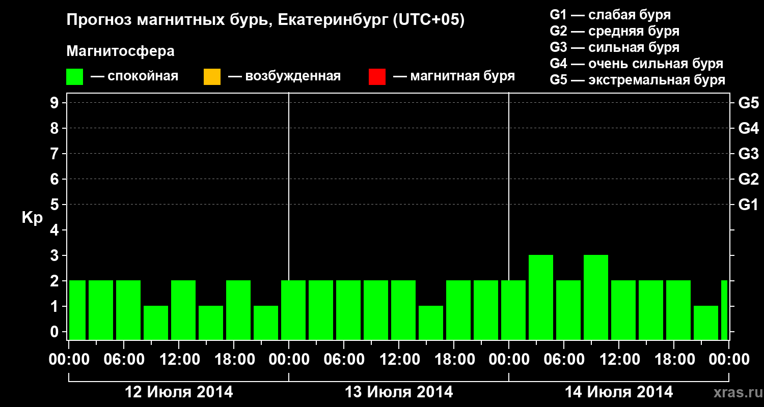 Прогноз магнитных бурь в Екатеринбурге — 12 июля 2014 года