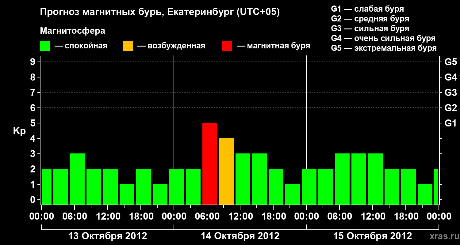 Прогноз магнитных бурь в Екатеринбурге на 13 октября 2012 года