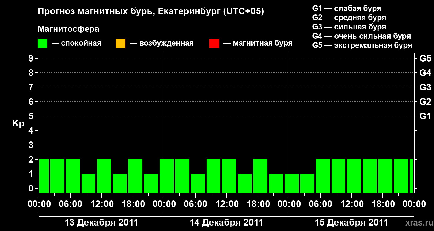 Прогноз магнитных бурь в Екатеринбурге на 13 декабря 2011 года