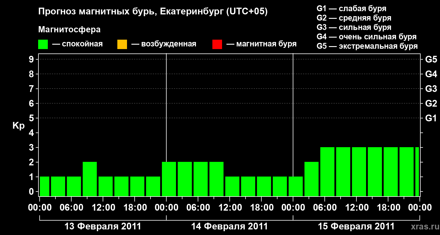 Прогноз магнитных бурь в Екатеринбурге на 13 февраля 2011 года