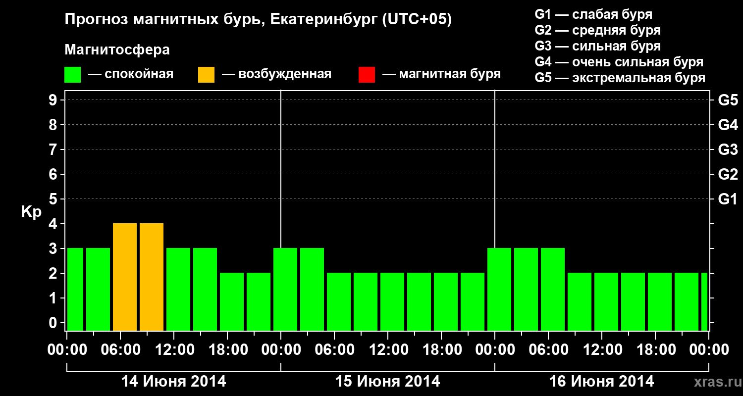 Прогноз магнитных бурь в Екатеринбурге — 14 июня 2014 года