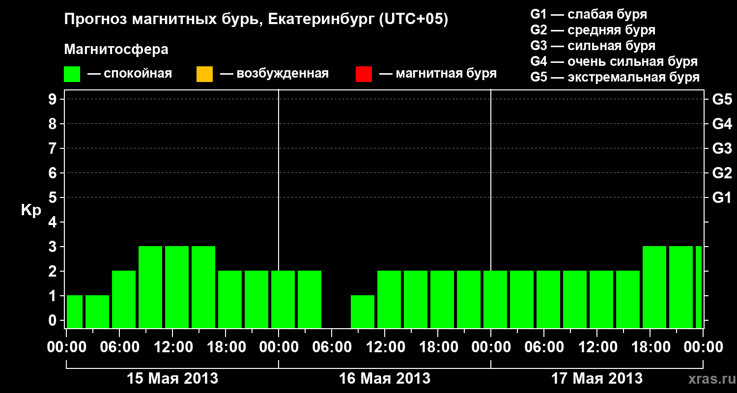Прогноз магнитных бурь в Екатеринбурге на 15 мая 2013 года