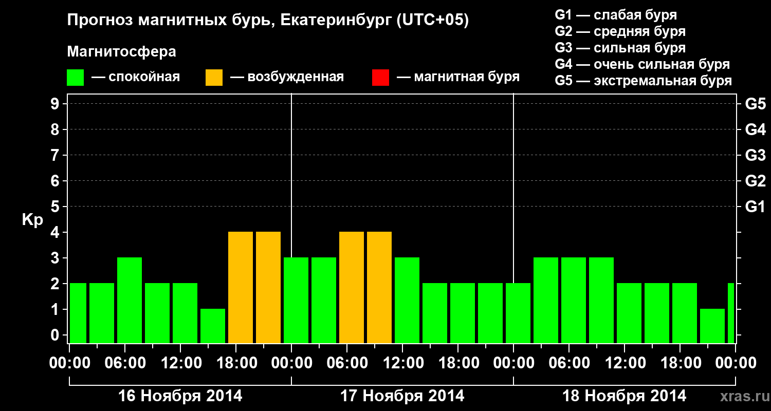 Прогноз магнитных бурь в Екатеринбурге — 16 ноября 2014 года