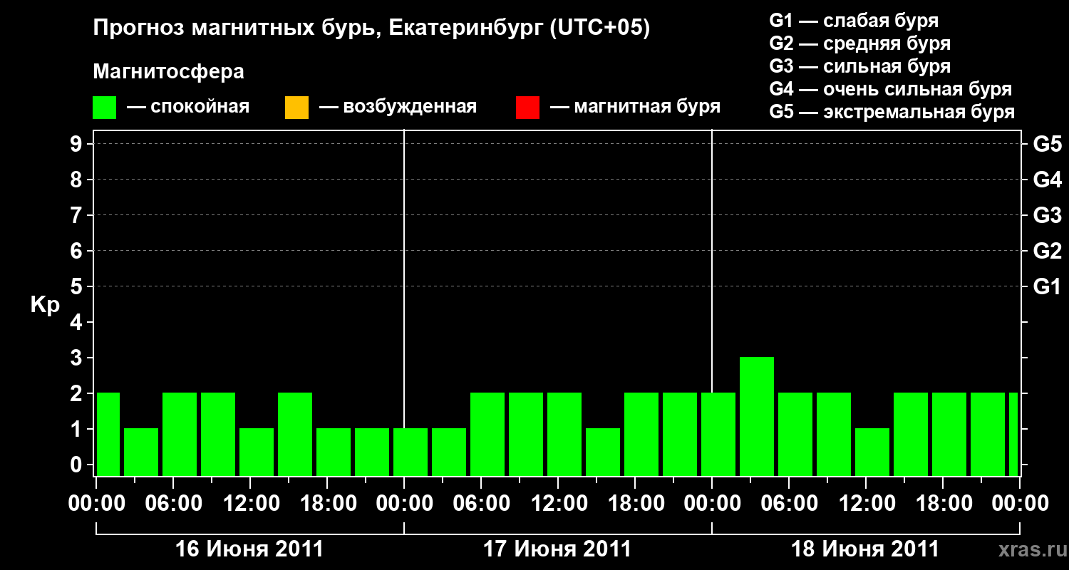 Прогноз магнитных бурь в Екатеринбурге — 16 июня 2011 года