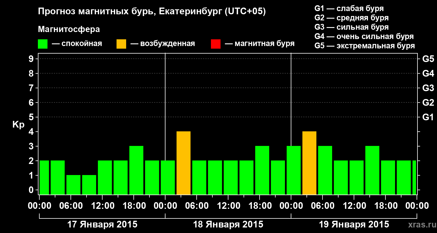 Прогноз магнитных бурь в Екатеринбурге на 17 января 2015 года