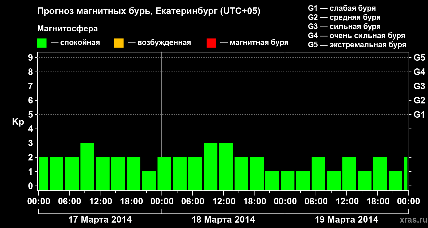 Прогноз магнитных бурь в Екатеринбурге на 17 марта 2014 года