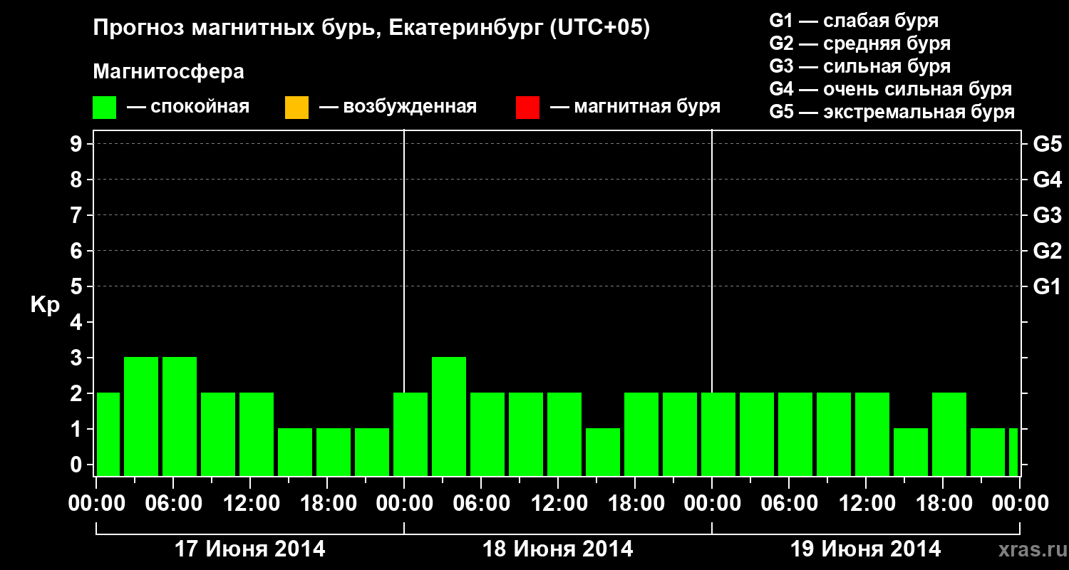 Прогноз магнитных бурь в Екатеринбурге — 17 июня 2014 года