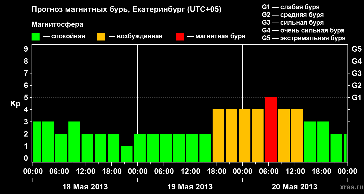 Прогноз магнитных бурь в Екатеринбурге на 18 мая 2013 года