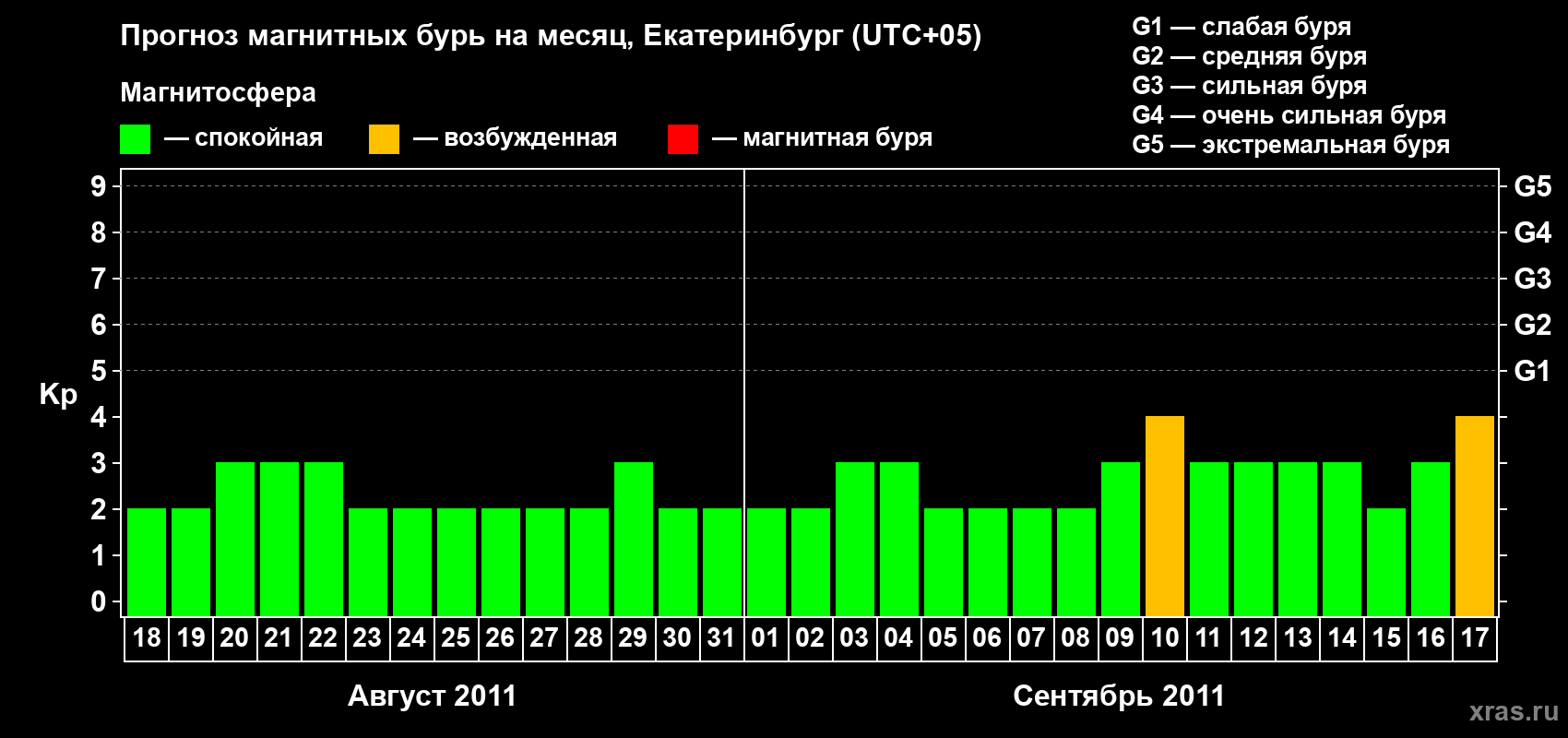 Прогноз магнитных бурь в Екатеринбурге — 18 августа 2011 года