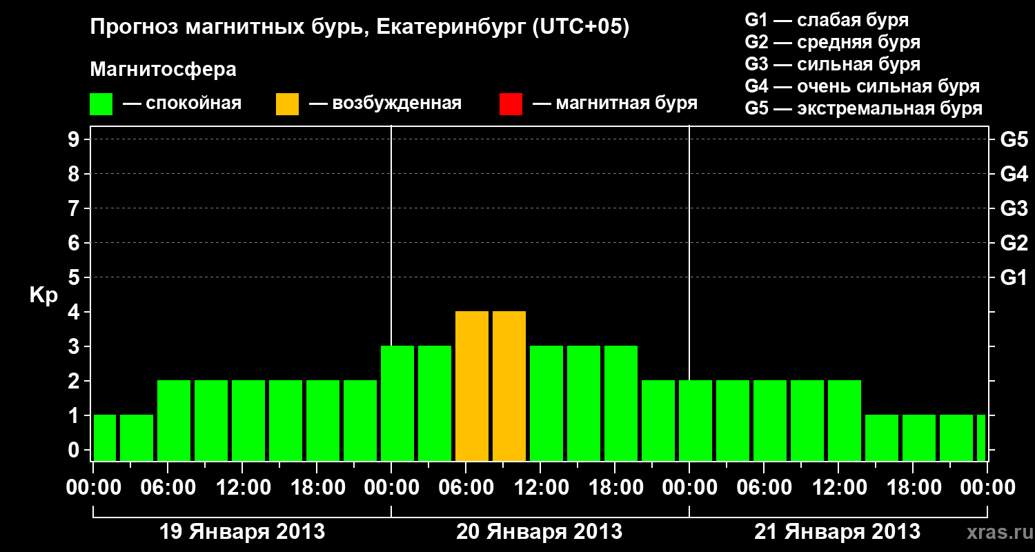 Прогноз магнитных бурь в Екатеринбурге на 19 января 2013 года