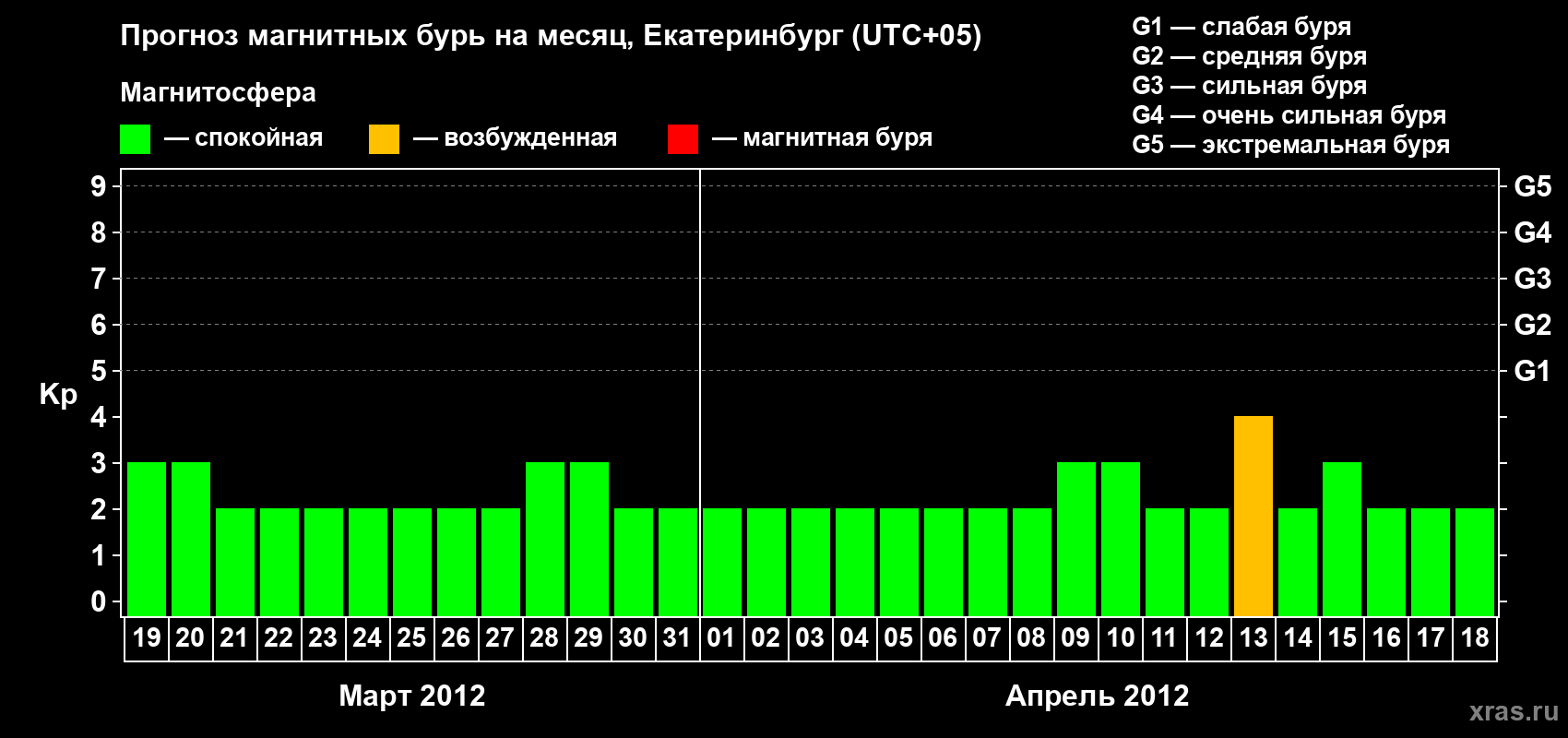 Прогноз магнитных бурь в Екатеринбурге на 19 марта 2012 года
