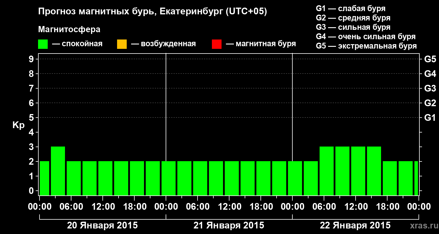 Прогноз магнитных бурь в Екатеринбурге на 20 января 2015 года