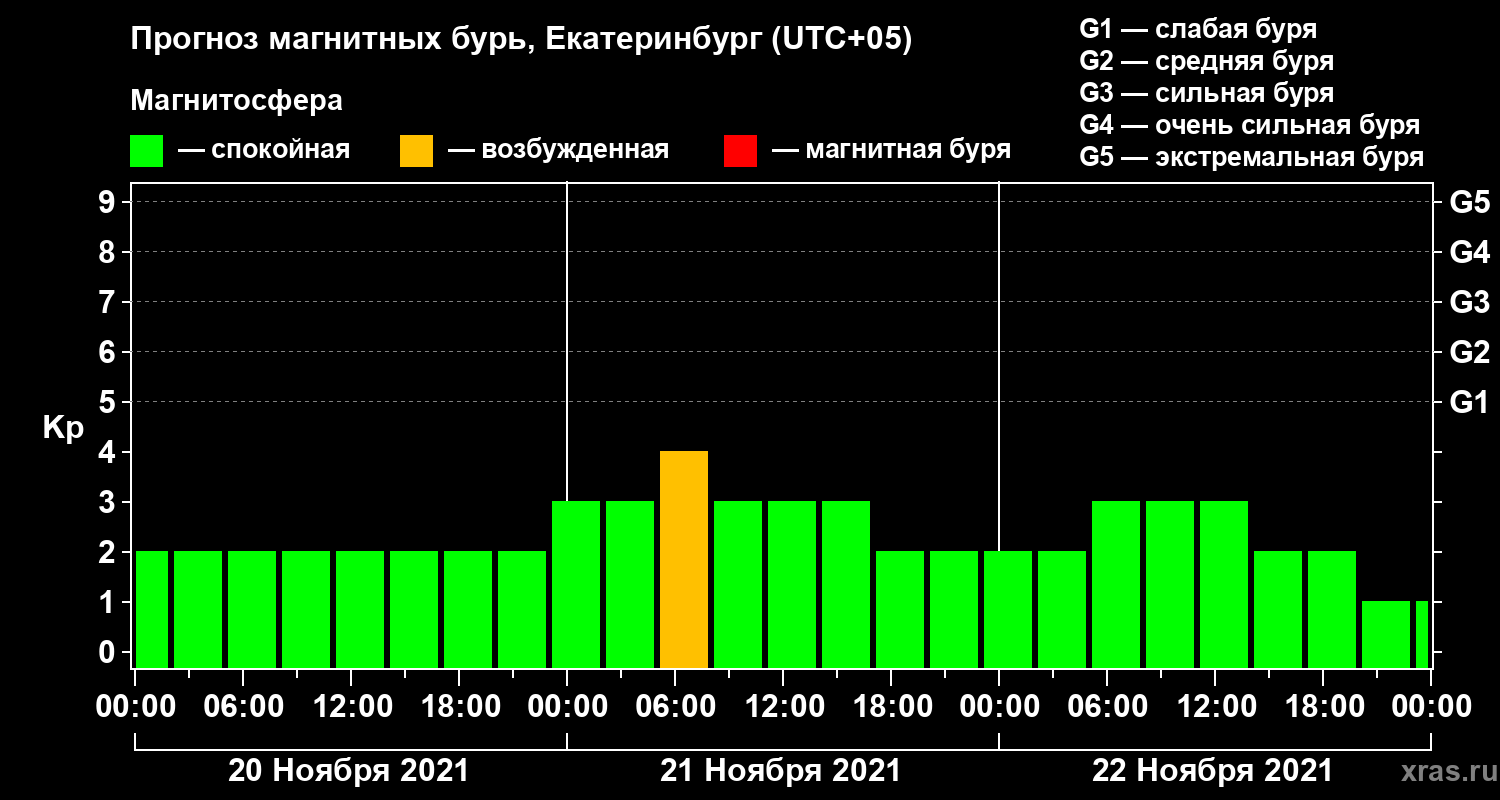 Прогноз магнитных бурь в Екатеринбурге на 20 ноября 2021 года