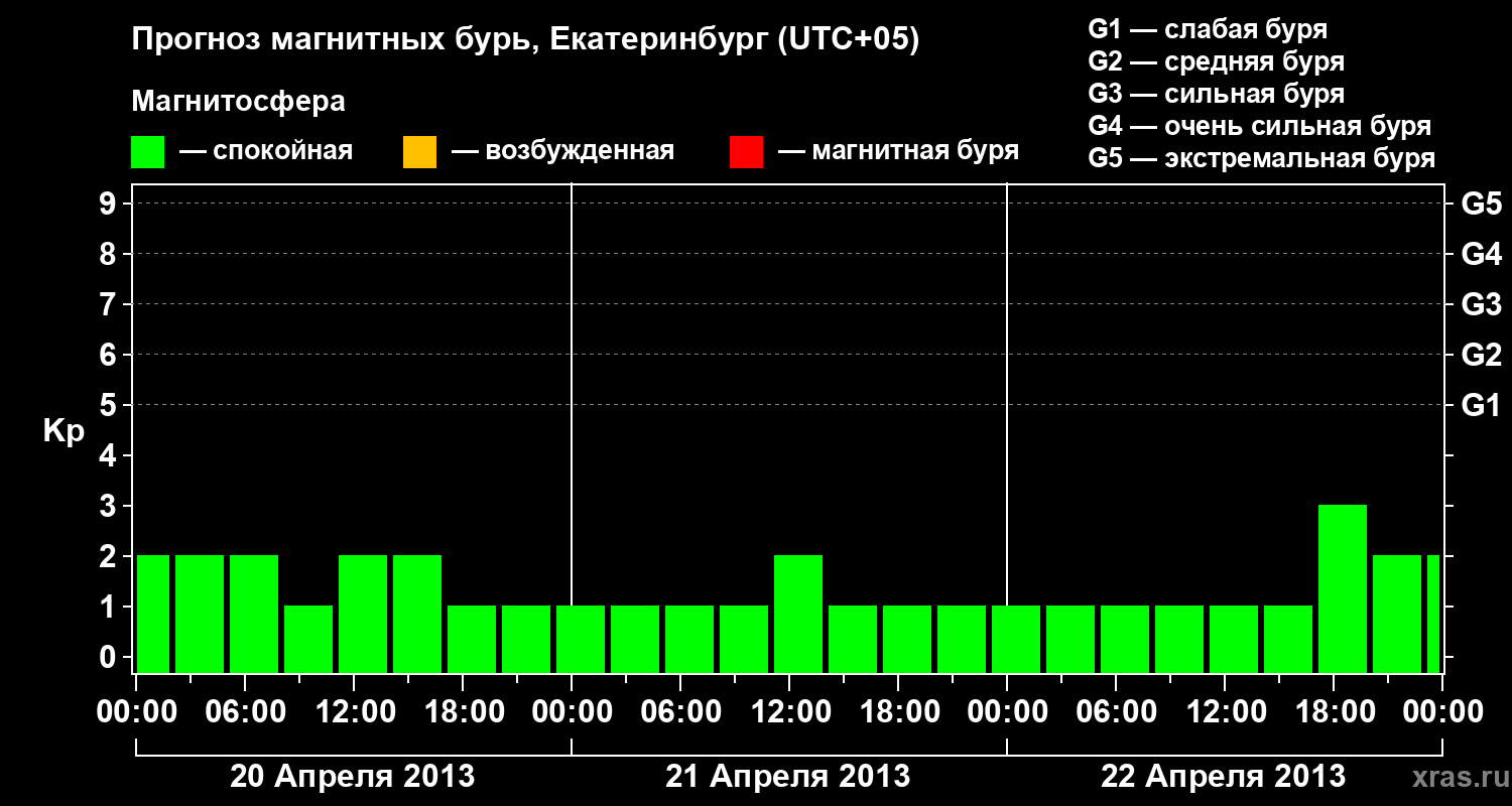 Прогноз магнитных бурь в Екатеринбурге — 20 апреля 2013 года