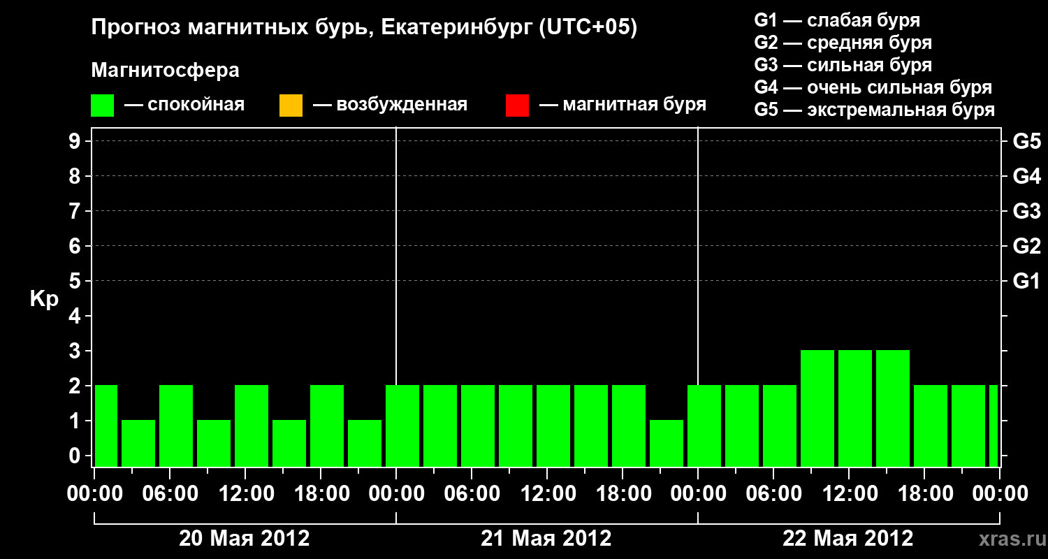 Прогноз магнитных бурь в Екатеринбурге — 20 мая 2012 года