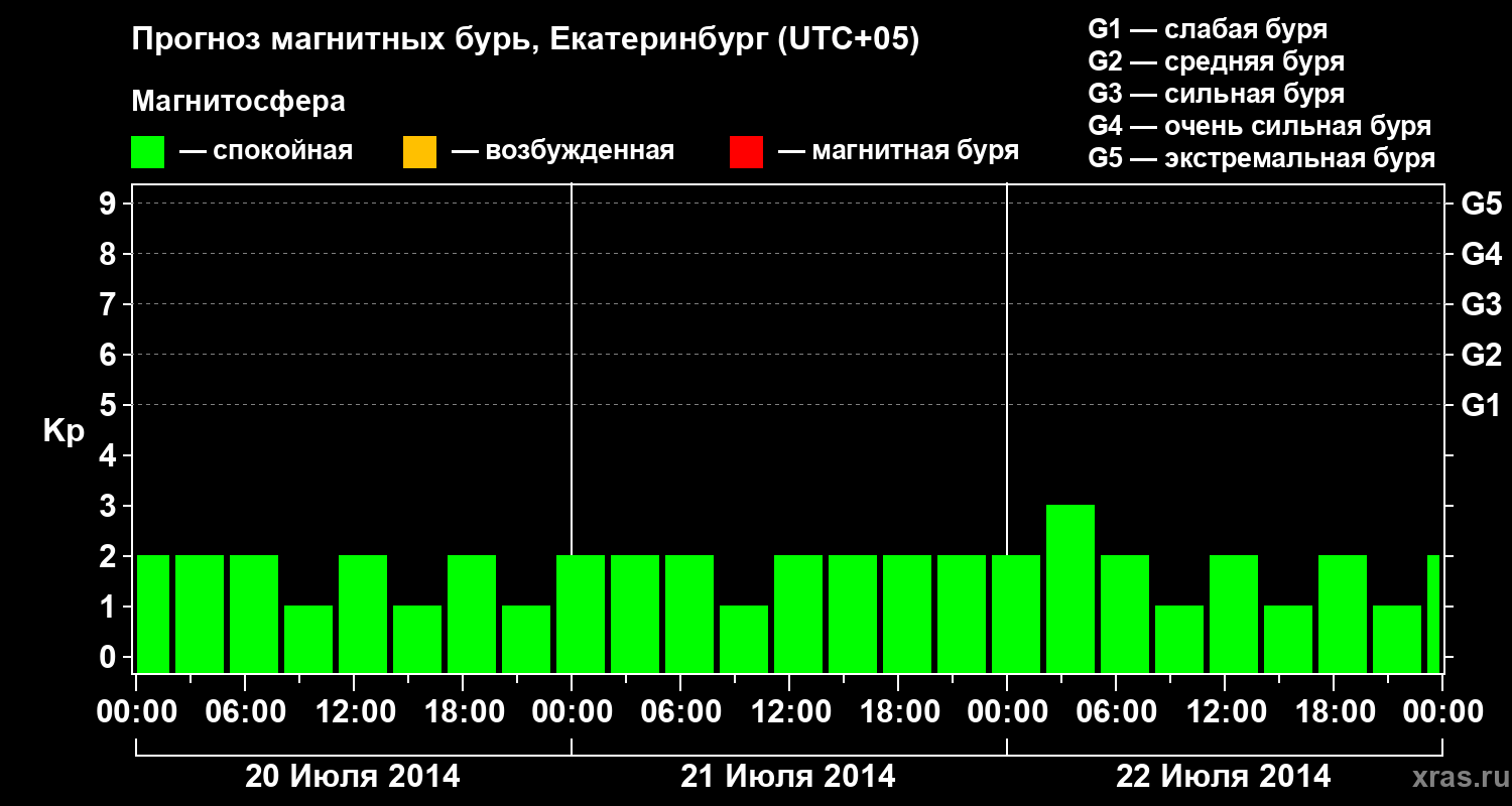 Прогноз магнитных бурь в Екатеринбурге на 20 июля 2014 года