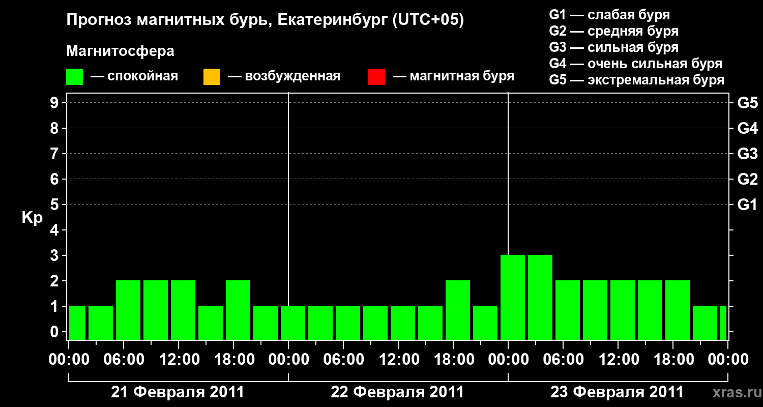 Прогноз магнитных бурь в Екатеринбурге — 21 февраля 2011 года