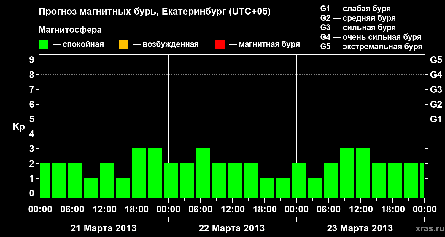 Прогноз магнитных бурь в Екатеринбурге на 21 марта 2013 года
