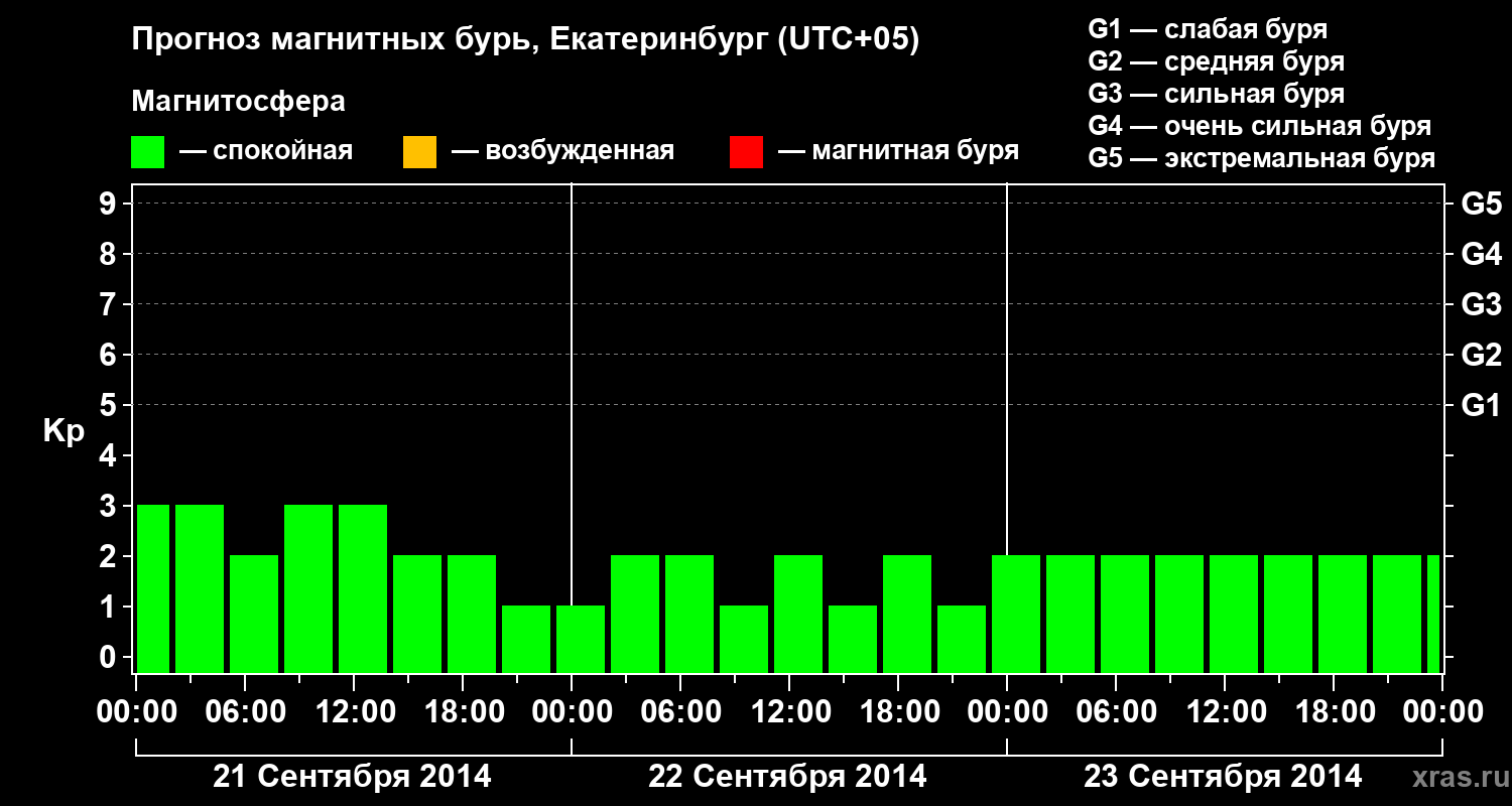 Прогноз магнитных бурь в Екатеринбурге на 21 сентября 2014 года