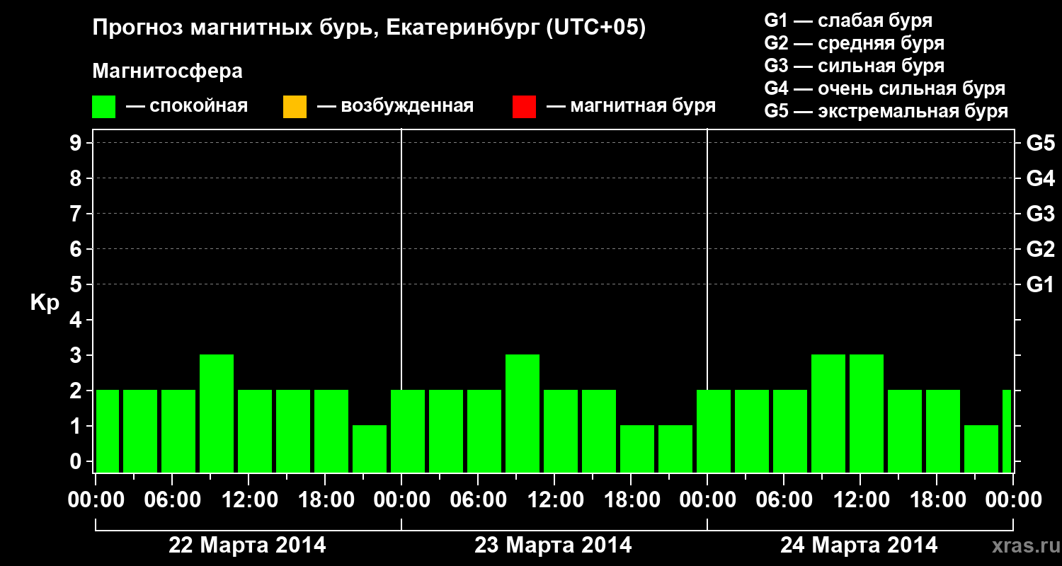 Прогноз магнитных бурь в Екатеринбурге — 22 марта 2014 года