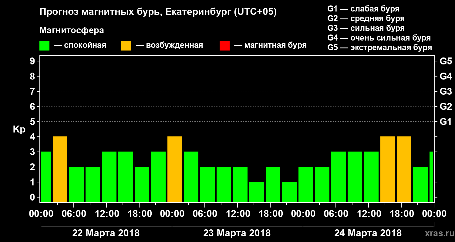 Прогноз магнитных бурь в Екатеринбурге на 22 марта 2018 года