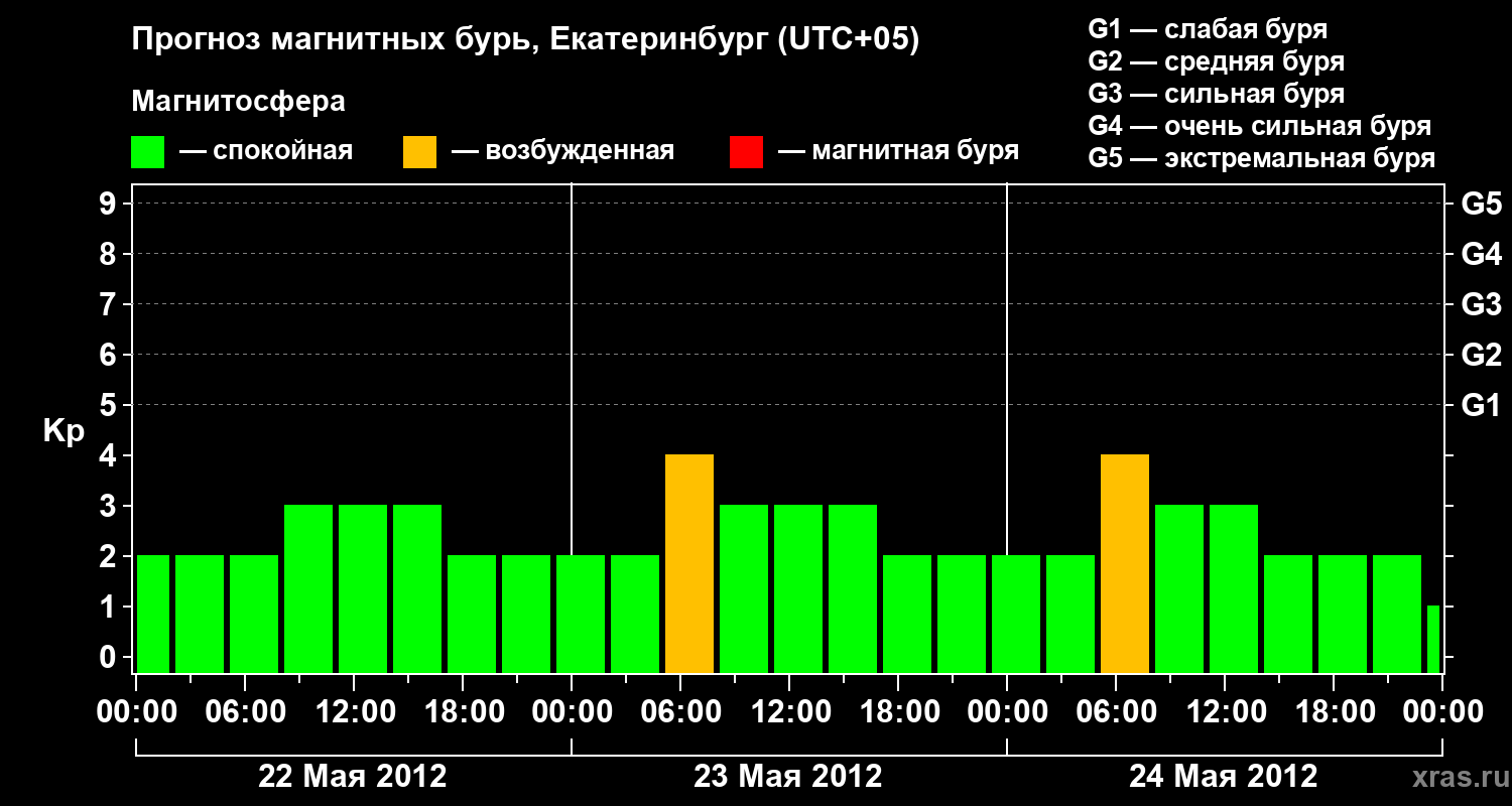 Прогноз магнитных бурь в Екатеринбурге — 22 мая 2012 года
