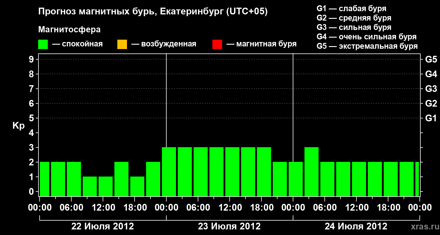 Прогноз магнитных бурь в Екатеринбурге на 22 июля 2012 года