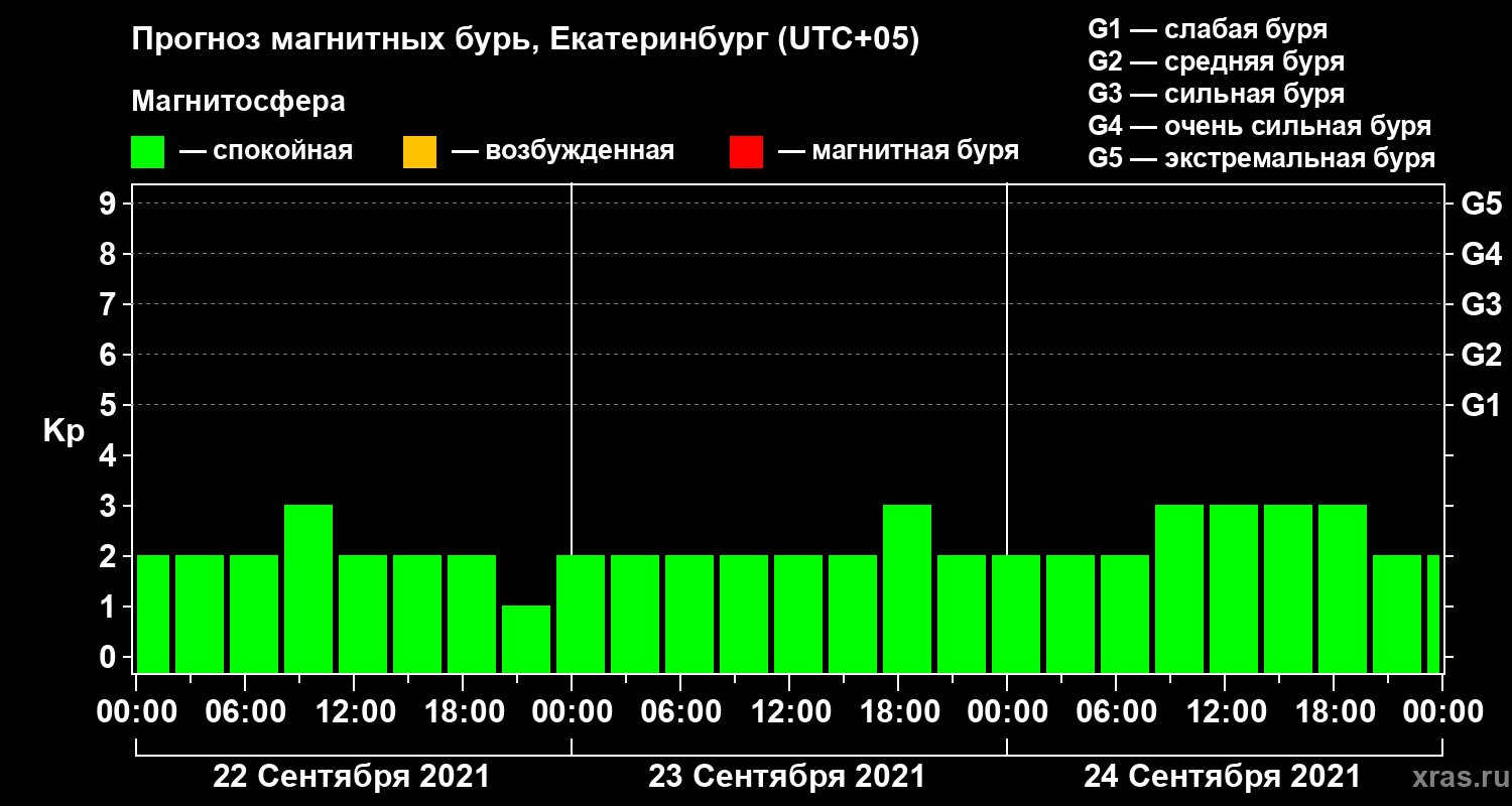 Прогноз магнитных бурь в Екатеринбурге на 22 сентября 2021 года