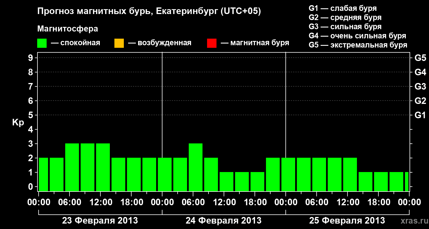 Прогноз магнитных бурь в Екатеринбурге — 23 февраля 2013 года