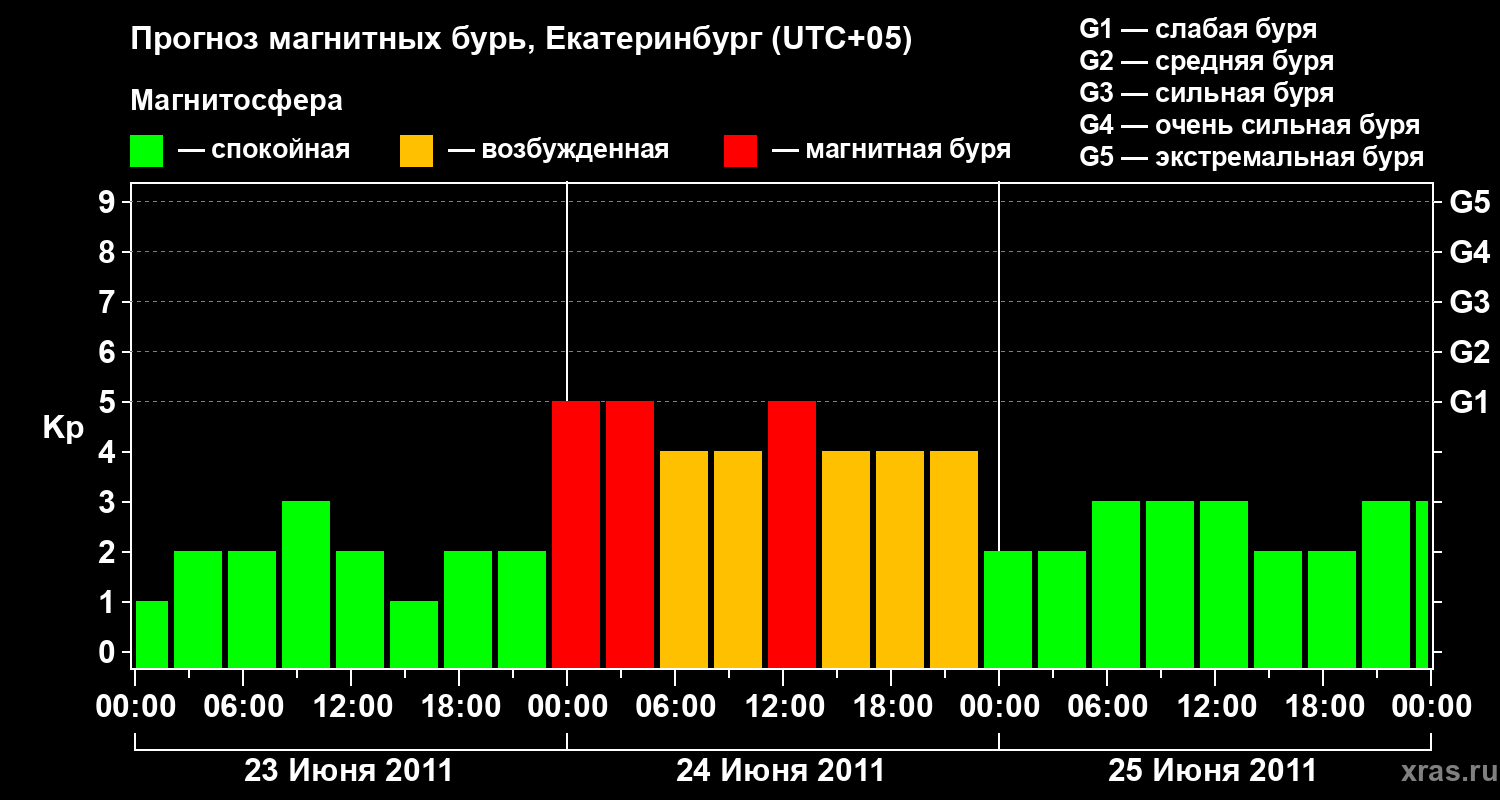 Прогноз магнитных бурь в Екатеринбурге — 23 июня 2011 года