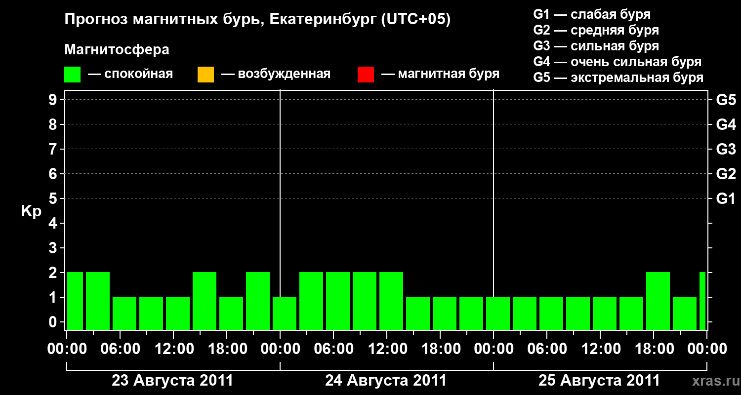 Прогноз магнитных бурь в Екатеринбурге на 23 августа 2011 года